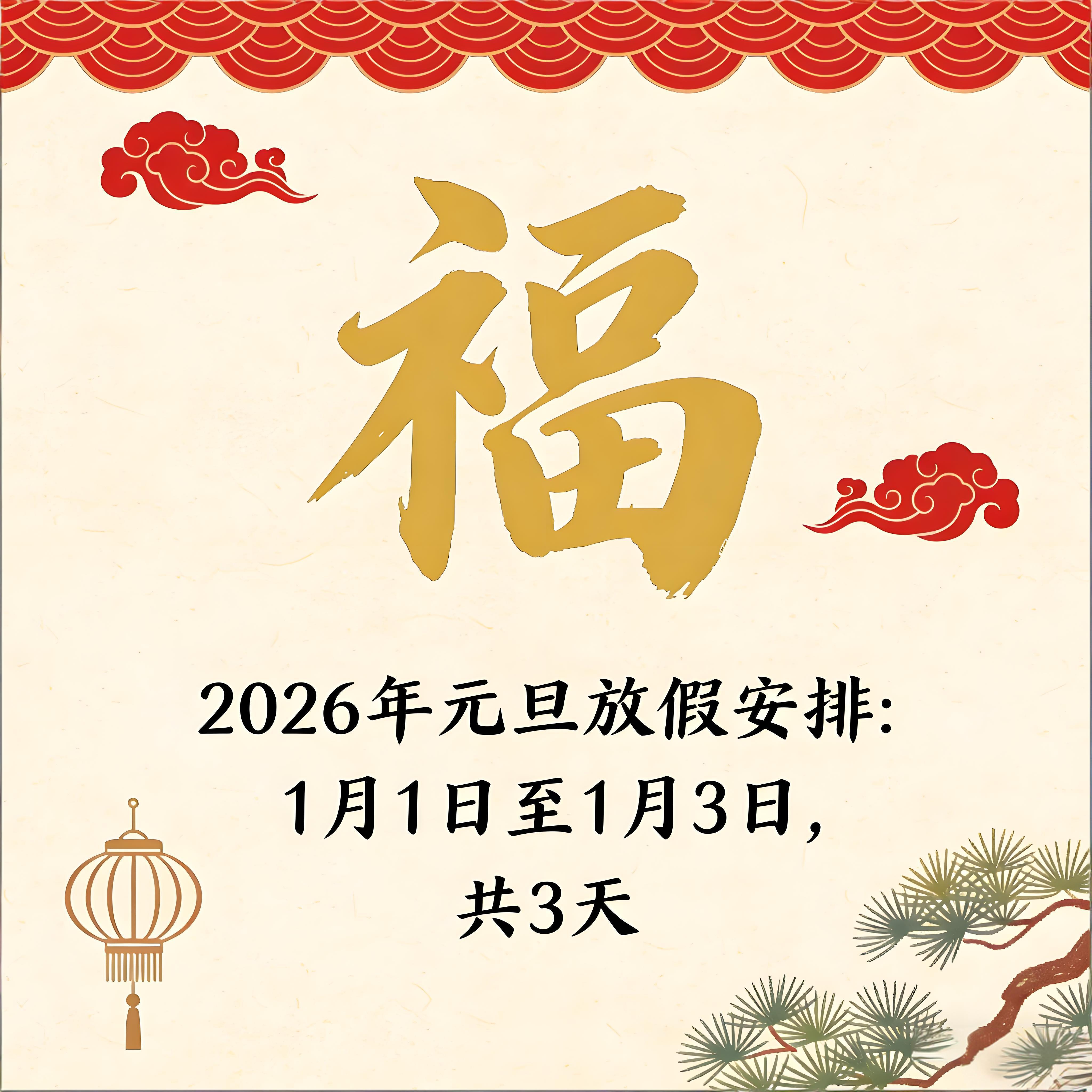 放假时间:2026年1月1日(星期四)至1月3日(星期六)